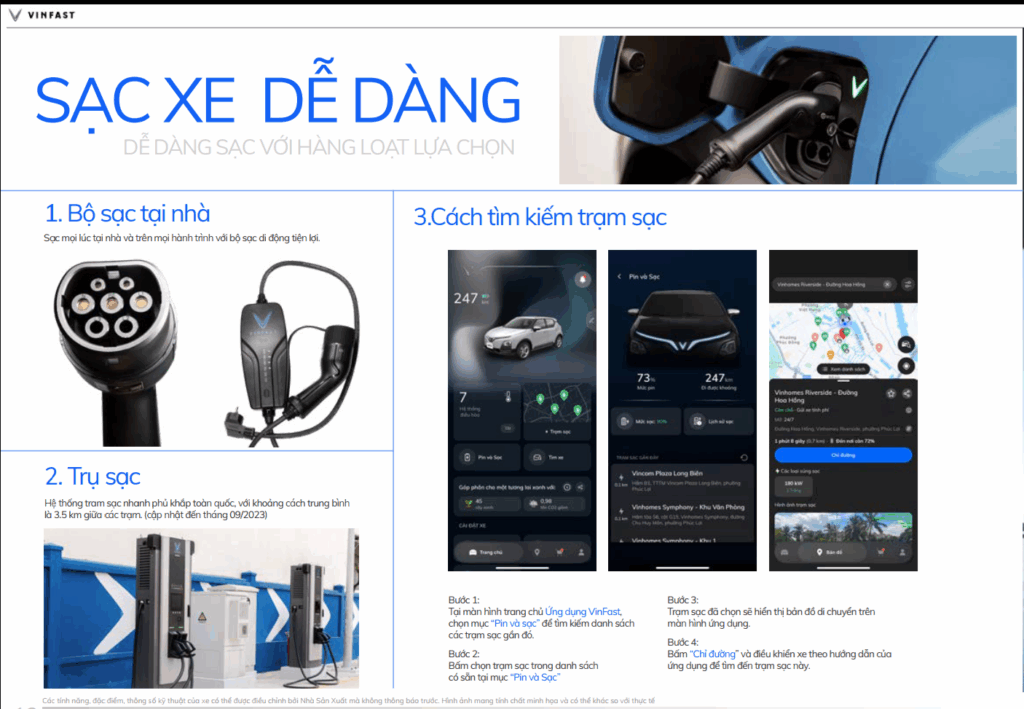 • Khoảng cách ngắn 3,5 km giữa 2 trạm sạc trong thành phố.