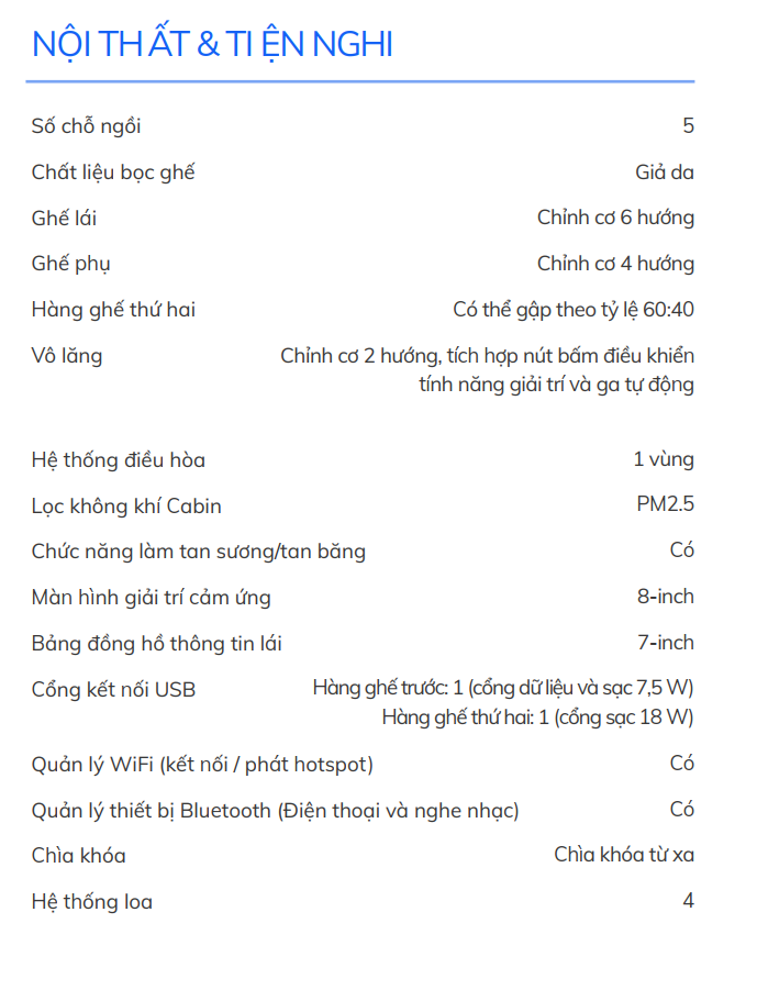 Nhận báo giá xe VINFAST VF5