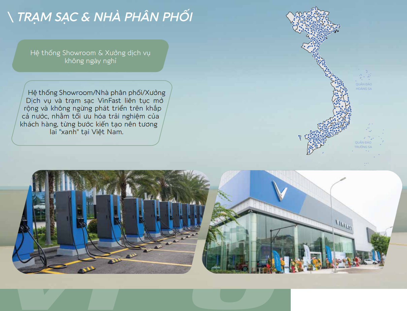 • Hệ thống trạm sạc xe điện VinFast trải dài 63 tỉnh và thành phố.