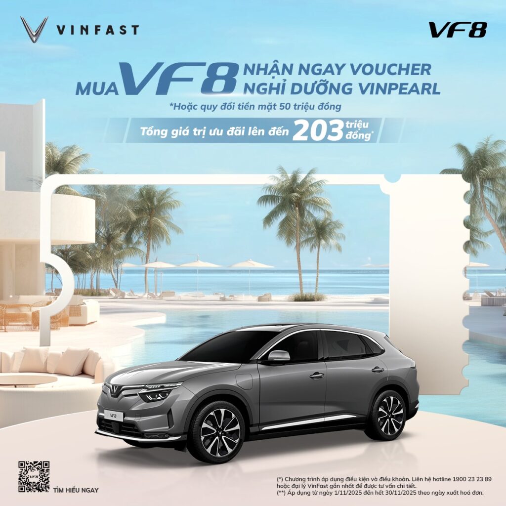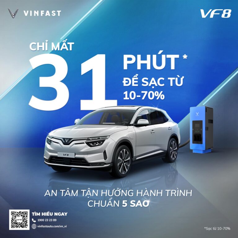 Với quãng đường di chuyển mỗi lần sạc đầy lên tới 471 km, kết hợp với hệ thống trạm sạc phủ sóng trên 63 tỉnh thành và nhiều ưu đãi đặc quyền dành riêng độc đáo, VinFast VF 8 cam kết sẵn sàng cùng bạn chinh phục mọi hành trình, cùng bạn tận hưởng không khí trong lành và khung cảnh thiên nhiên tươi đẹp trên mọi nẻo đường tại Việt Nam.